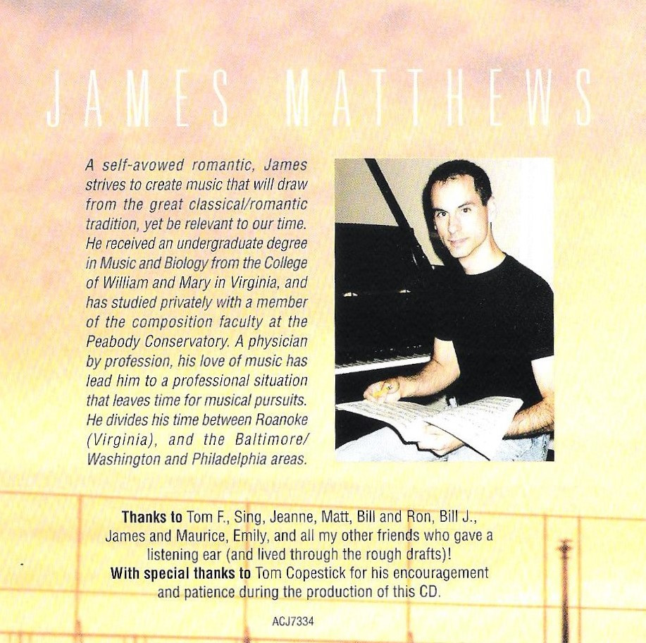 The picture below is my bio from the back cover of a CD I produced in 2000. Things change! The commitment to accessible, beautiful music has not.